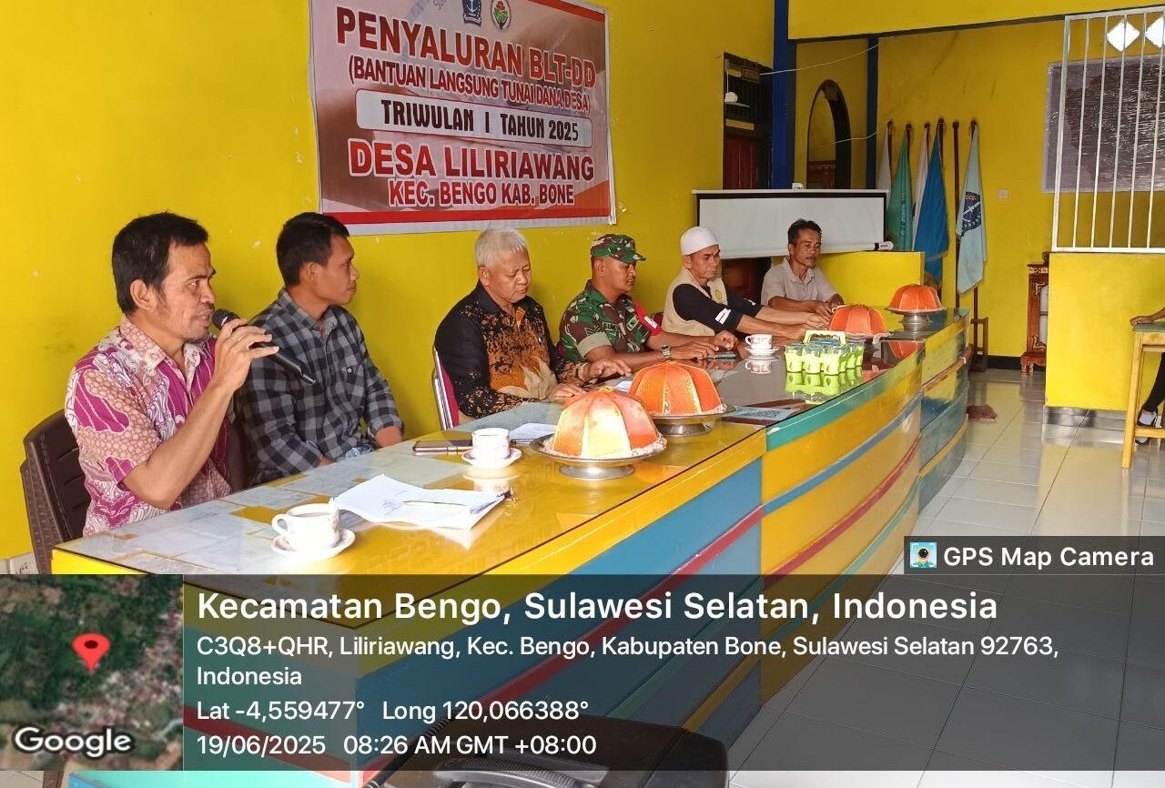 BONE – Babinsa Koramil 1407-09/Lapri Serka Sumitro melaksanakan pendampingan dalam rangka pembagian (Bantuan Langsung Tunai Dana Desa) BLT DD Tw II tahun 2025 kepada…