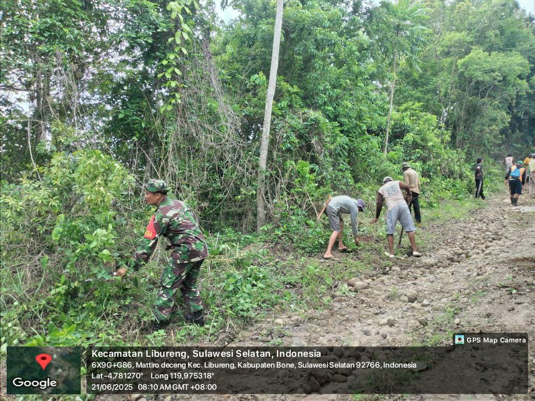 Bone – Babinsa Koramil 14/Libureng Kodim 1407/Bone Serka Irvan bersama warga masyarakat melaksanakan kerja bakti pembersihan parit dan jalan di Desa Mattiro Deceng, Kecamatan…