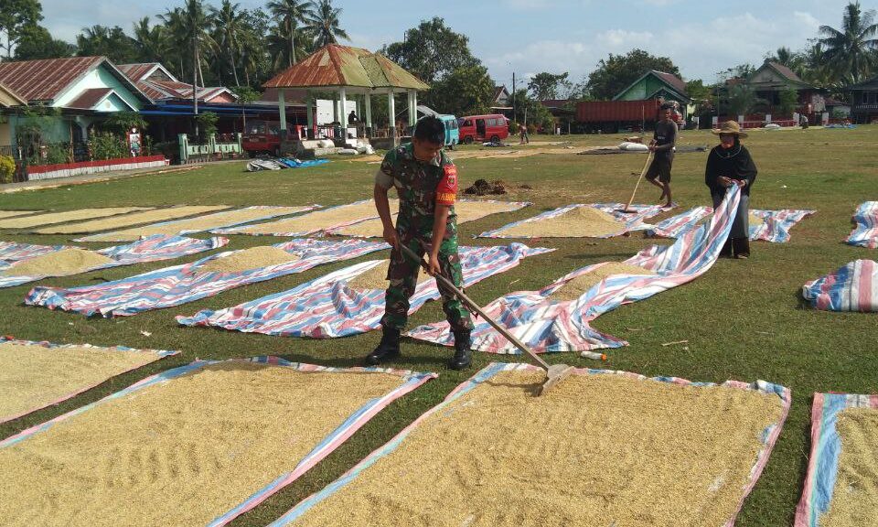 BONE – Babinsa Koramil 09/Lapri Kodim 1407/Bone membantu petani di wilayah binaan sedang menjemur padi usai di panen beberapa waktu lalu, berlokasi di Desa…