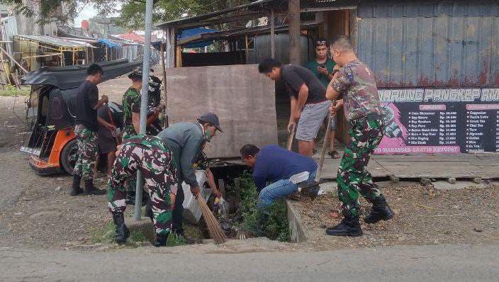BONE – Serda Ahmad Anggota Koramil 01/Ajangale, Kodim 1407/Bone bersama dengan masyarakat melaksanakan pembersihan sampah di depan pasar Pompanua di Kel. Pompanua, Kec. Ajangale,…