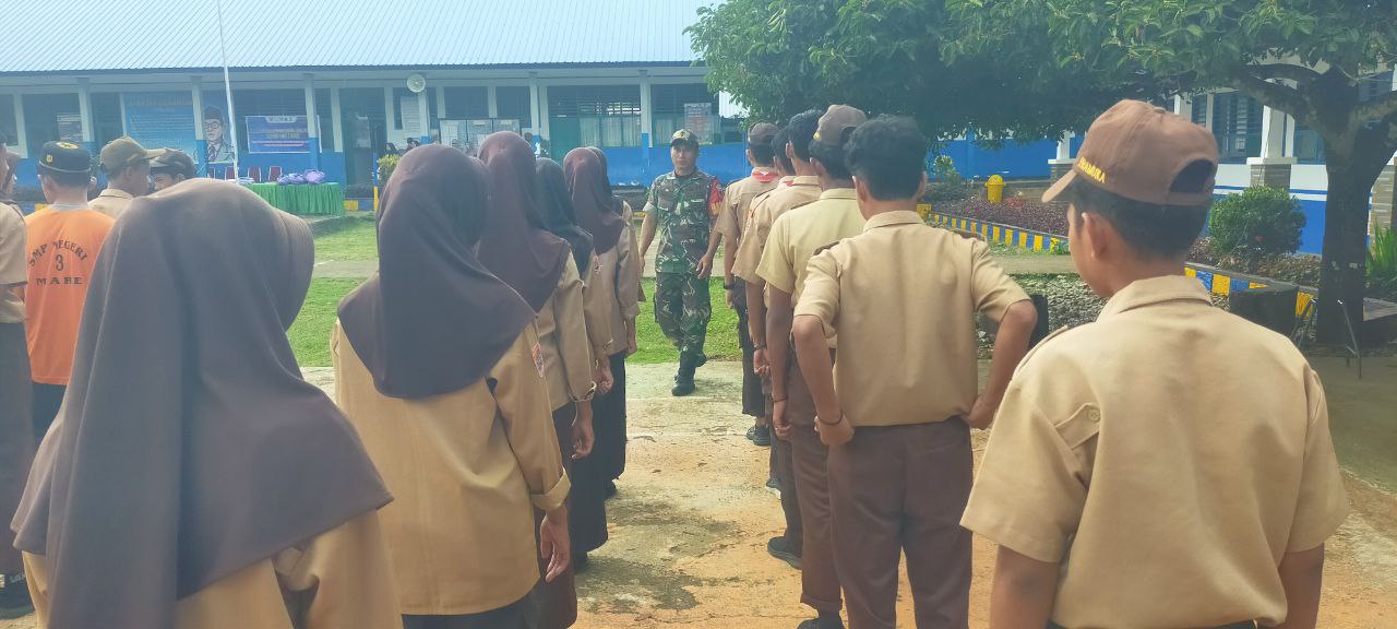 BONE – Bentuk sikap kedisiplinan, loyalitas, kepedulian, dan rasa tanggung jawab, Babinsa Koramil 1407-15/Mare Kopda Supriadi Djafar berikan pelatihan materi dasar Peraturan Baris Berbaris…