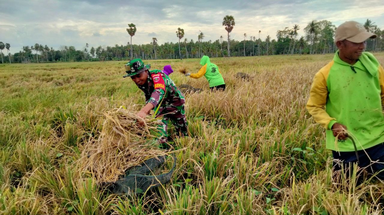 BONE – Babinsa Koramil 1407-01/Ajangale Serda Erwin melaksanakan pendampingan panen padi secara manual di lahan sawah seluas 1 hektar milik masyarakat di wilayah Kel….