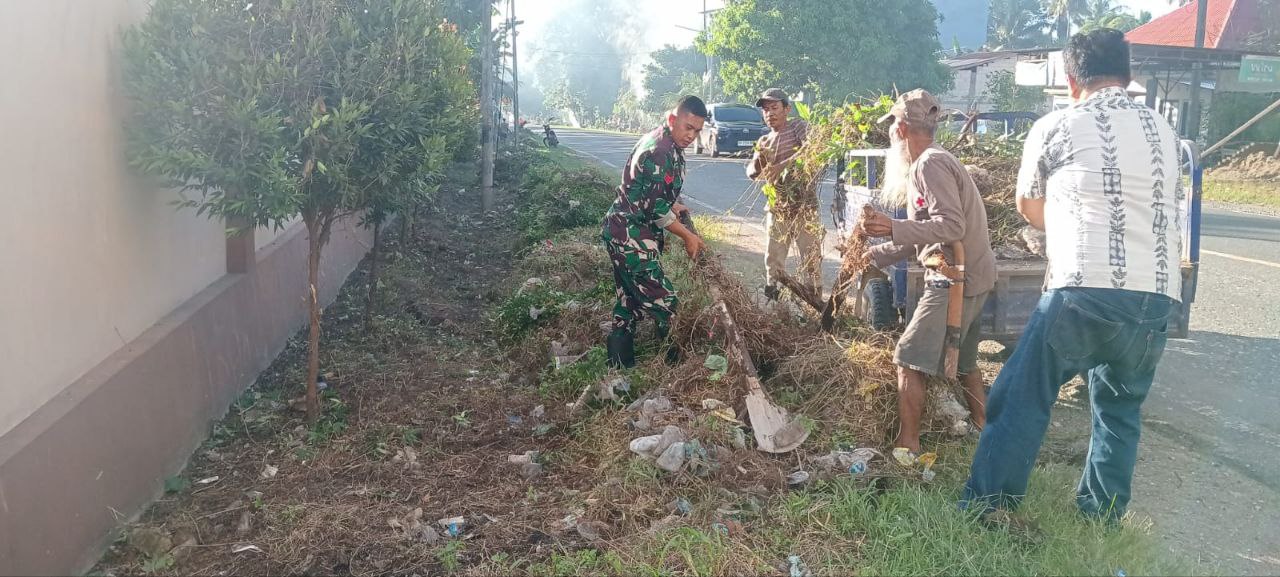 BONE – Wujudkan lingkungan yang bersih dan asri, Babinsa Koramil 1407-21/Palakka Koptu Samaila bersama dengan warga melaksanakan kerja bakti pembersihan di sepanjang jalan poros…