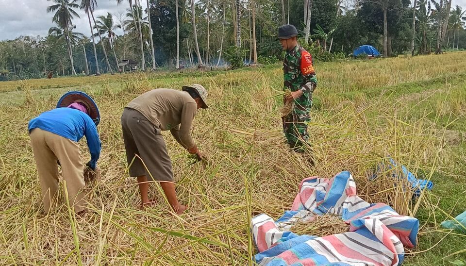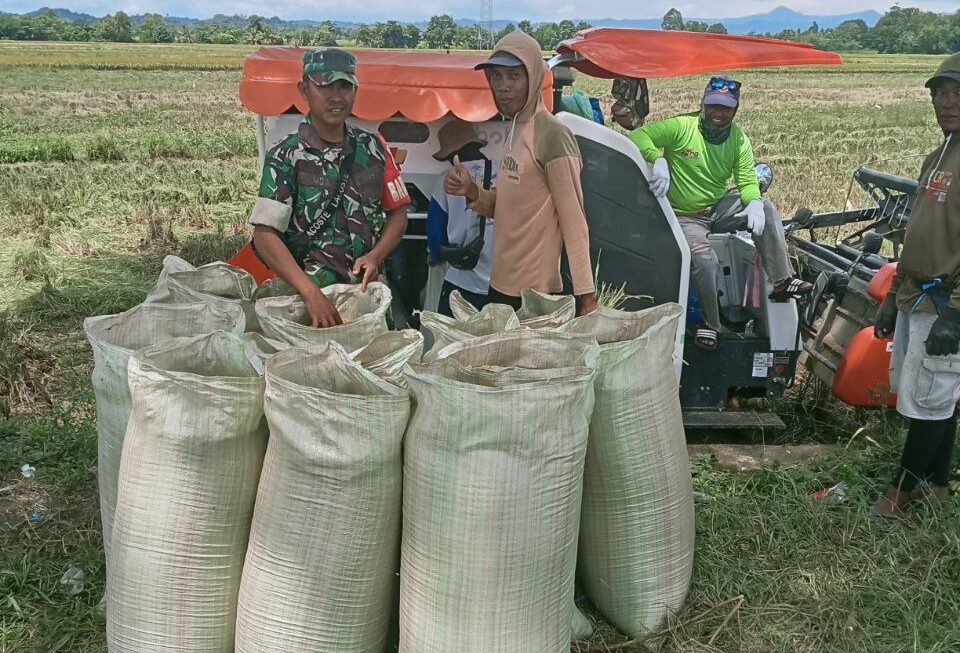 BONE – Babinsa Koramil 21/Palakka Kodim 1407/Bone Serda Sudarman melaksanakan pendampingan membantu petani proses panen padi secara manual di Dusun 2 Ajangpanisi, Desa Siame,…
