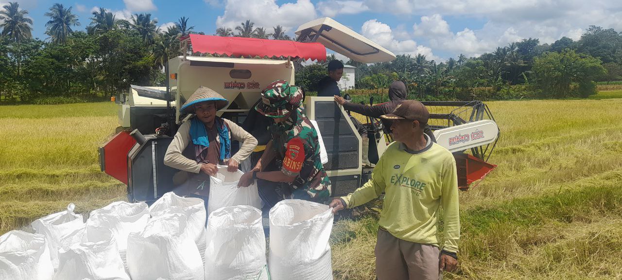 BONE – Babinsa Koramil 19/Kahu Kodim 1407/Bone Serda Akbar melaksanakan pendampingan panen padi di lahan milik salah satu warga dengan luas sawah 1 Ha di…