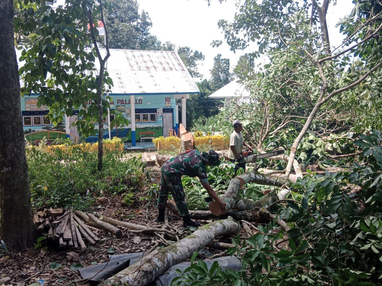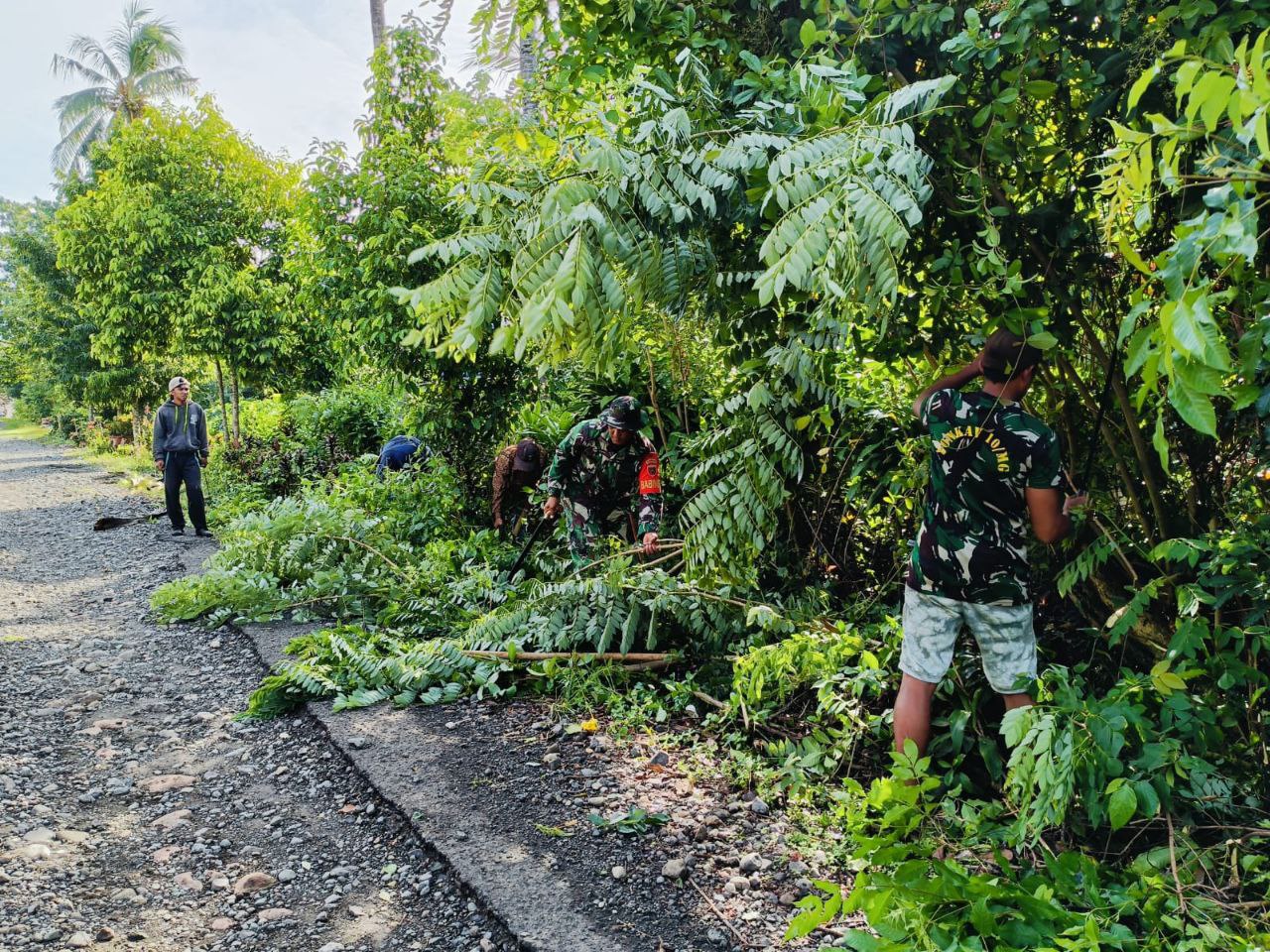BONE – Anggota Koramil 1407-13/Sibulue Kopka Arifin bersama Perangkat Desa dan Warga Masyarakat melaksanakan kerja bakti pembersihan ranting ranting serta memangkas pohon yang mengganggu…