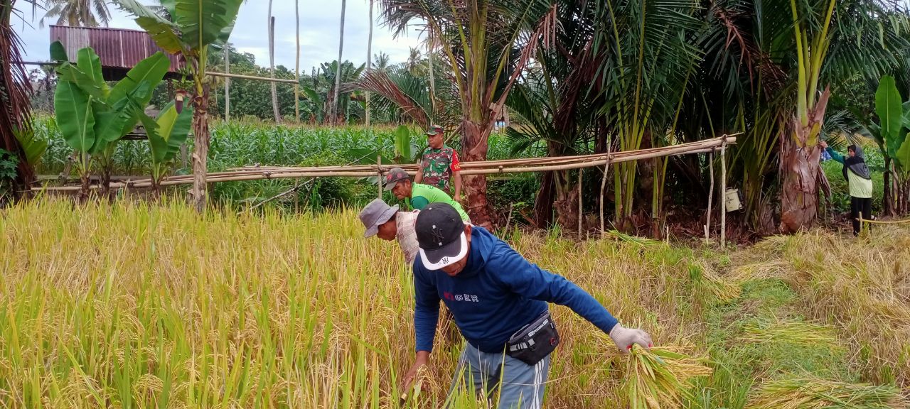 BONE – Sertu Malik Babinsa Koramil 05/Ulaweng Kodim 1407/Bone dampingi petani melaksanakan panen padi di wilayah binaannya bertempat di Dusun Pallawa Rukka, Desa Pallawa…
