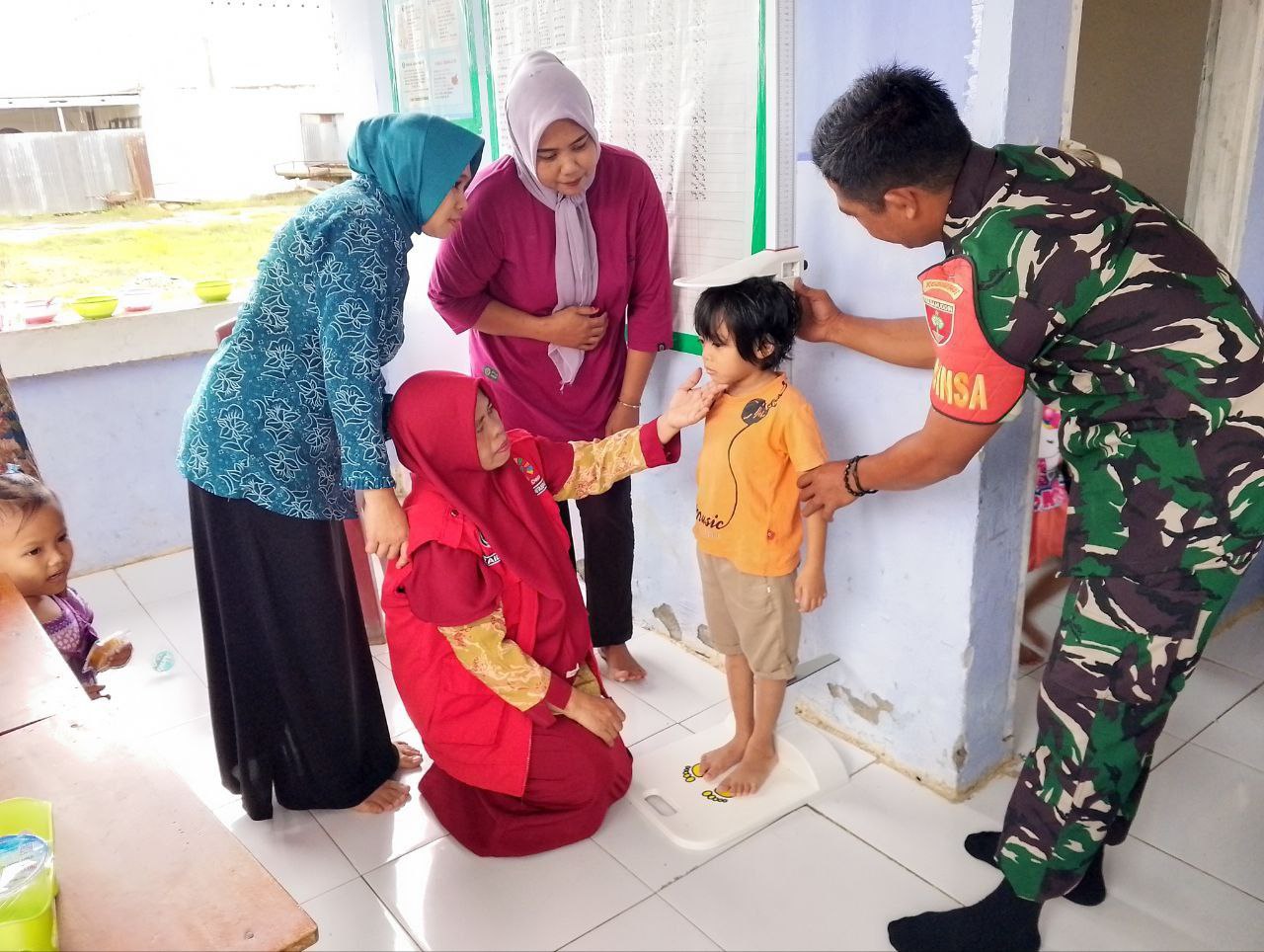 Bone – Babinsa Koramil 1407-15/Mare Serda Irpan dampingi Pos Pelayanan Terpadu (Posyandu) bagi balita dan ibu hamil yang dilaksanakan di Posyandu Cendrawasih, Dusun Saungeng,…
