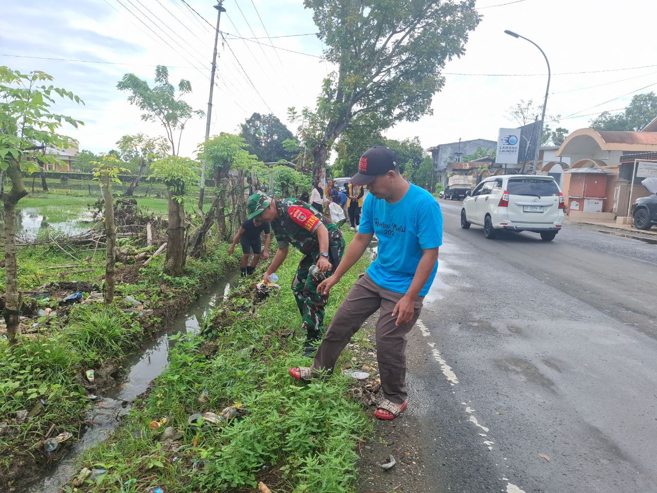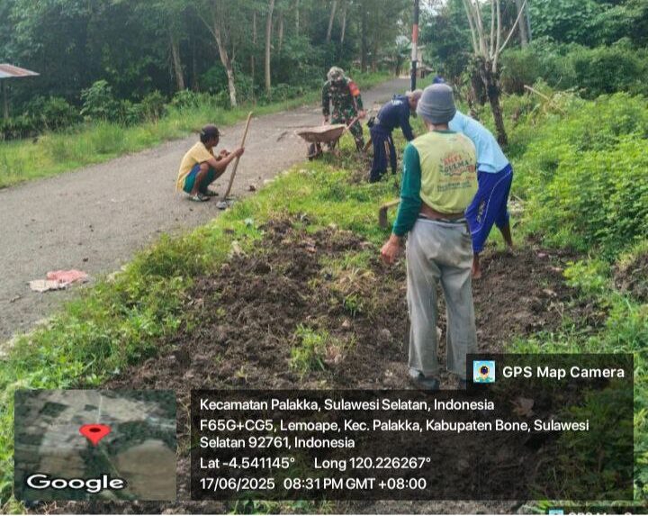 Bone – Babinsa Koramil 1407-21/Palakka Serda Samsul Bahri melaksanakan gotong royong bersama warga membersihkan saluran air, tumpukan sampah, serta rumput liar di sepanjang pinggir…
