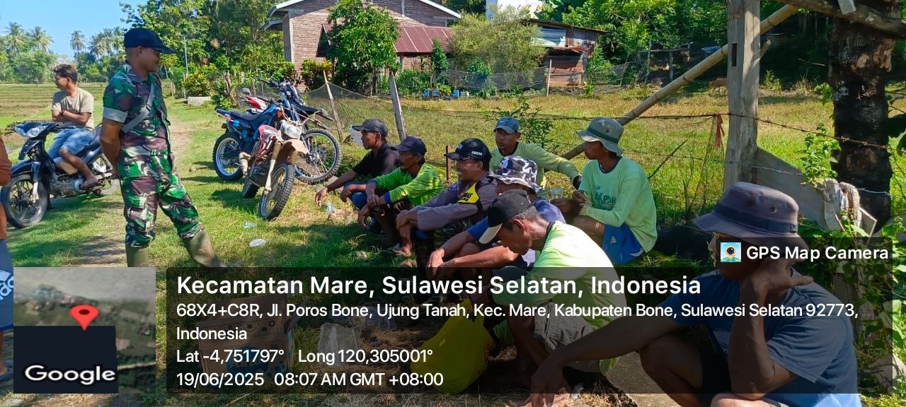 Bone – Babinsa Koramil 1407-05/Ulaweng, Serda Musliadi, melaksanakan kegiatan Komunikasi Sosial (Komsos) bersama aparatur desa di Kelurahan Cinnong, Kecamatan Ulaweng, Kabupaten Bone. Kamis (19/06/25)….