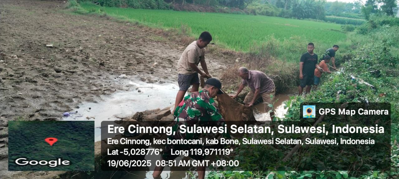 Bone – Babinsa Koramil 1407-07/Tanete Riattang, Serka Baharuddin, bersama warga masyarakat melaksanakan kerja bakti memperbaiki saluran air yang tersumbat akibat curah hujan tinggi di…