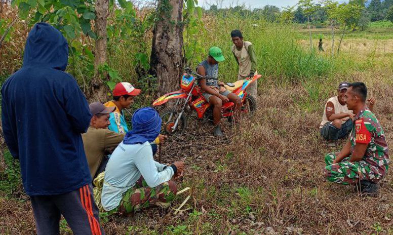BONE – Asa kemampuan teritorial, Babinsa Koramil 1407-08/Lamuru Serda Ismail melaksanakan Komunikasi Sosial (Komsos) dengan masyarakat binaan di Dusun Langkana, Desa Mattampawalie, Kecamatan Lamuru,…