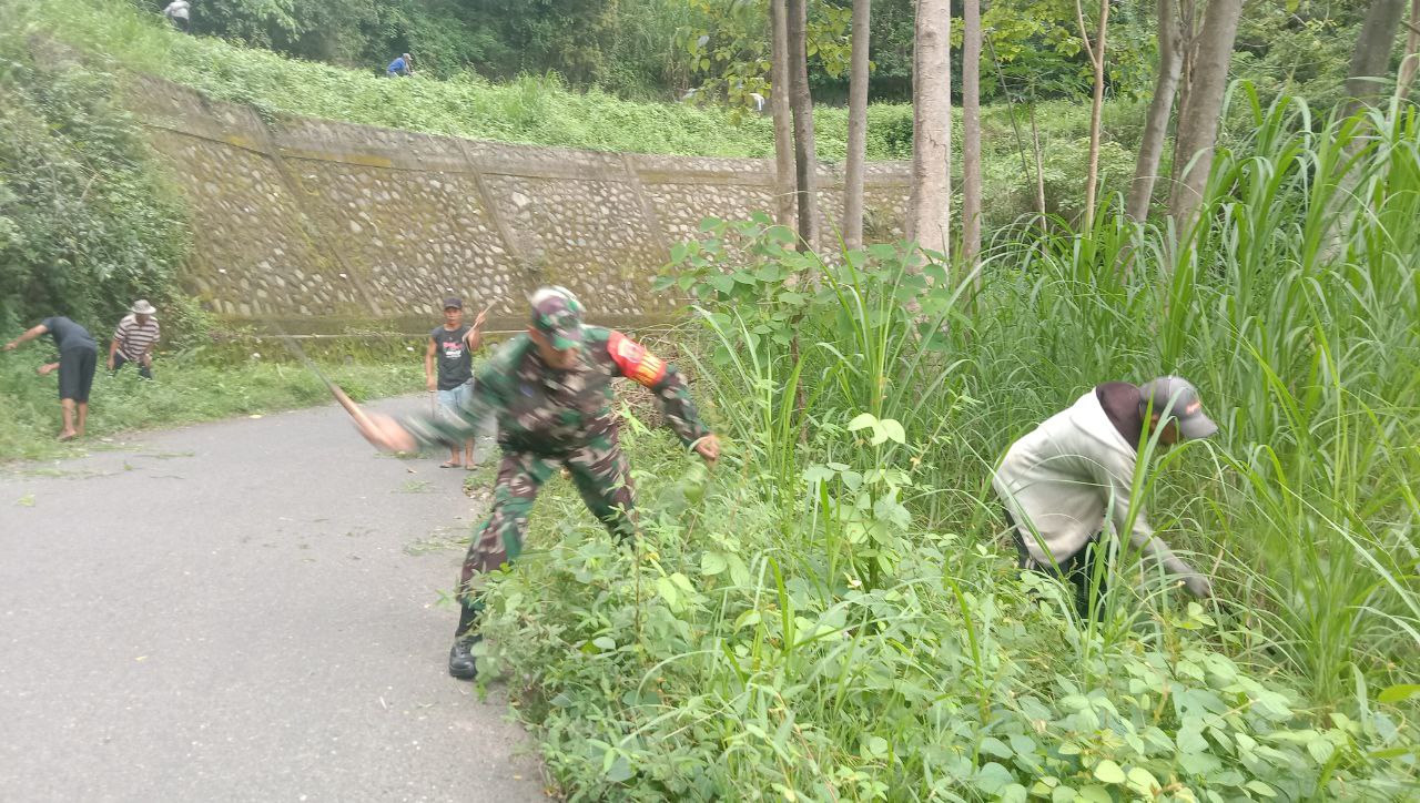 BONE – Tata lingkungan menjadi rapi dan bersih, Babinsa Koramil 1407-20/Bontocani bersama warga melakukan kerja bakti pembersihan bahu jalan di sepanjang jalan Poros kel….