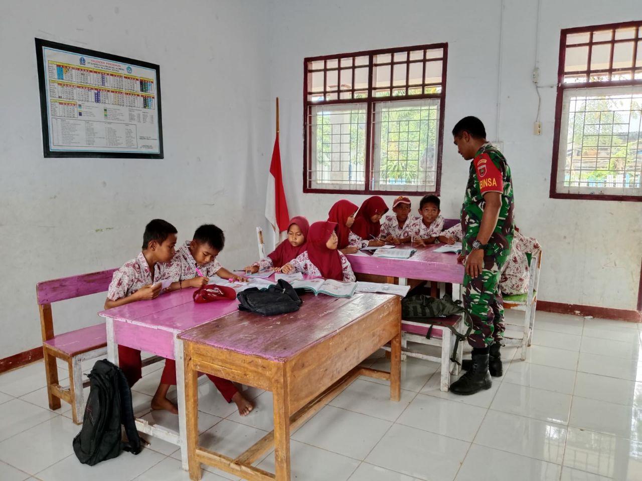 BONE – Babinsa Koramil 17/Salomekko Kodim 1407/Bone Sertu Suardi. S memberikan Wawasan Kebangsaan (Wasbang) kepada murid SD 12/79 Dusun Labukku, Desa Ulubalang, Kecamatan Salomekko,…