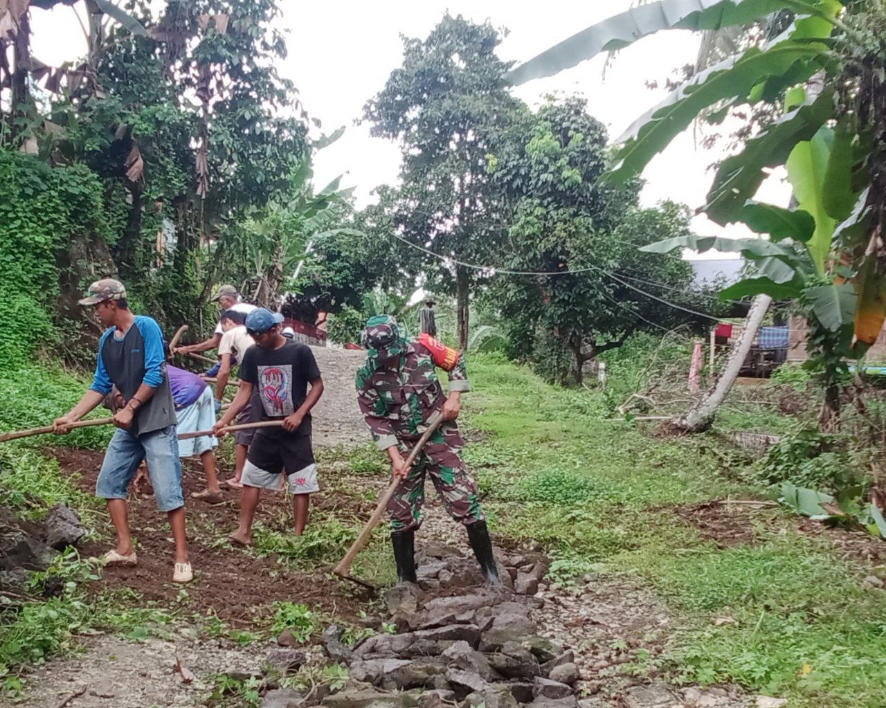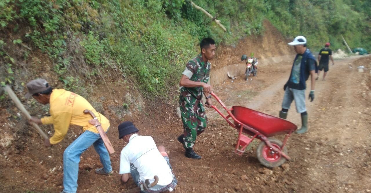 Bone – Babinsa Koramil 1407-09/Lapri, Sertu Suwardi bersama warga binaannya melaksanakan gotong royong membangun jalan usaha tani di Desa Mattaropuli, Kecamatan Bengo, Kabupaten Bone,…