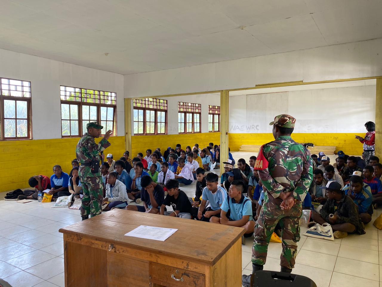 Tigi, – Koramil 1703-02/Tigi. Babinsa Serka Suherman Bersama 5 orang rekan Babinsa Lainya memberikan wawasan kebangsaan dan pembentukan karakter siswa dengan latihan PBB kepada…