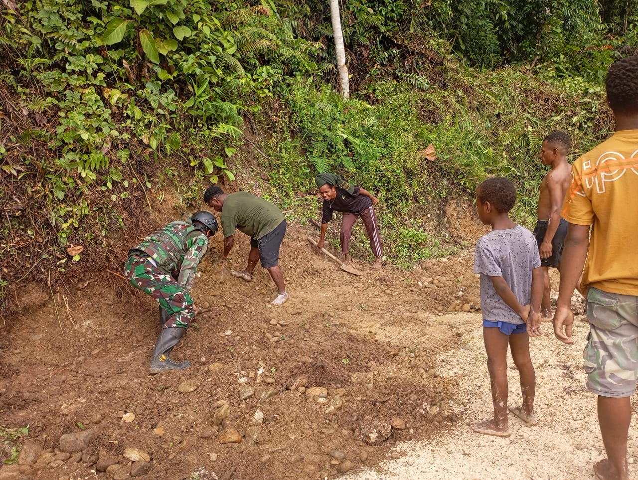 Kali ini anggota Letkol Petir Andhika Ganessakti selaku Dansatgas Yonif 133/YS melaksanakan kegiatan karya Bhakti perbaikan badan jalan yang rusak terletak di Kampung Tahsimara,…