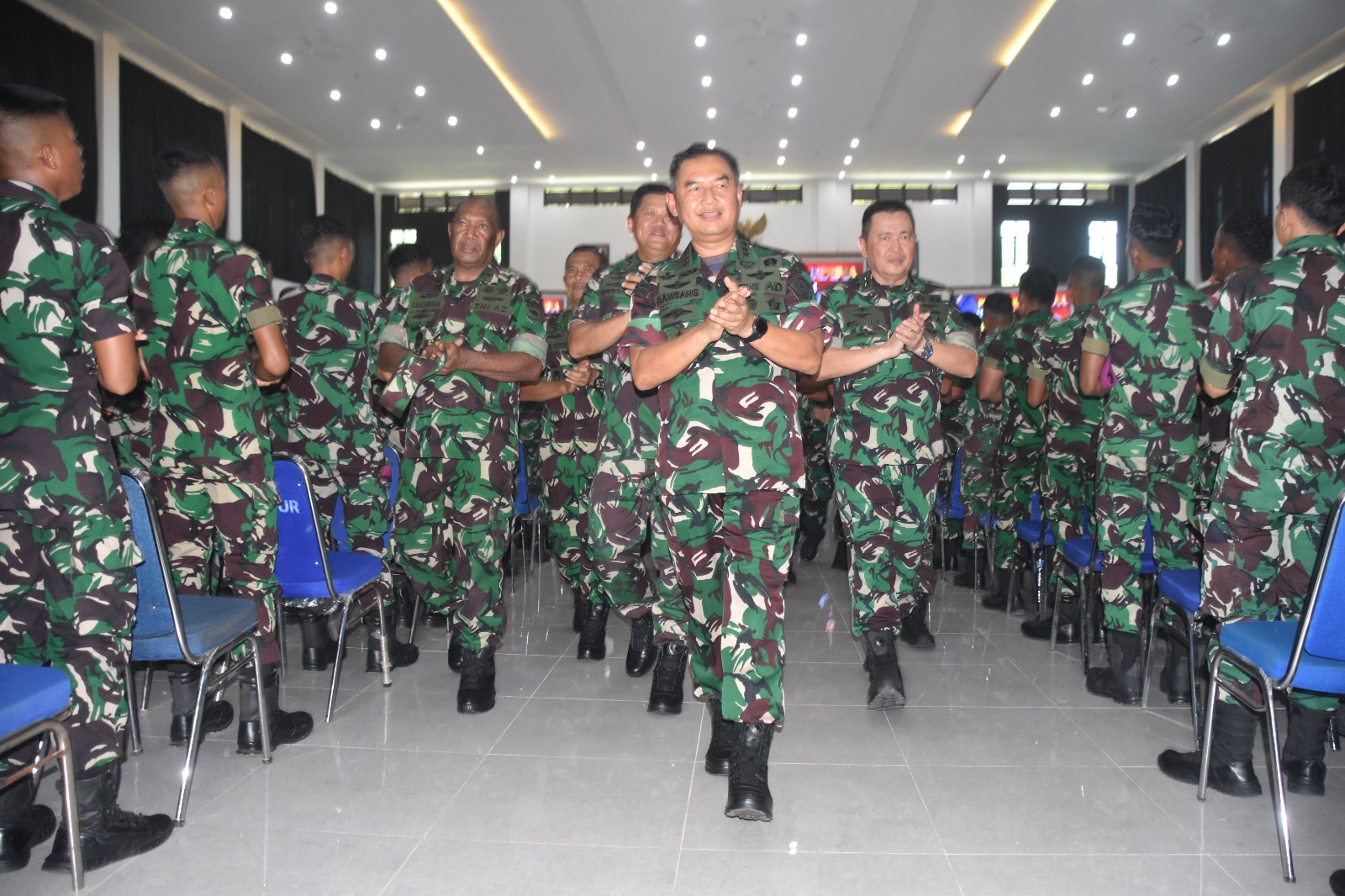 Sorong-Papua Barat Daya, Danrem 181/PVT Brigjen TNI Totok Sutriono, S.Sos.,M.M., Mendampingi Kasum TNI Letjen TNI Bambang Ismawan, S.E.,M.M., memberikan pengarahan kepada Prajurit di Wilayah…