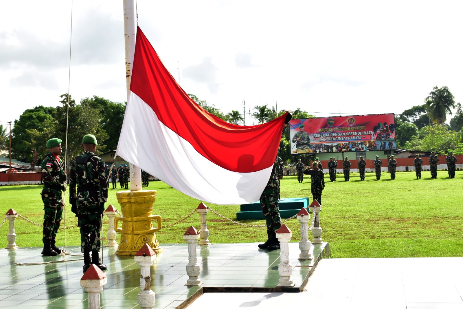 Kepala Staf Kodim 1707/Merauke Mayor Arm Gordon Glefield S.L. memimpin upacara bendera mingguan sekaligus bertindak sebagai Inspektur Upacara (Irup) bertempat di Lapangan Upacara Makodim…