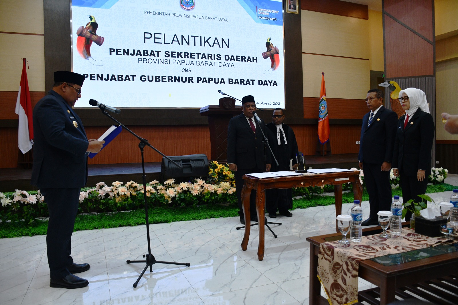Sorong – Papua Barat Daya, Danrem 181/PVT Brigjen TNI Totok Sutriono, S.Sos., M.M., Menghadiri Kegiatan Pelantikan jabatan Penjabat Sekretaris Daerah Provinsi Papua Barat Daya…