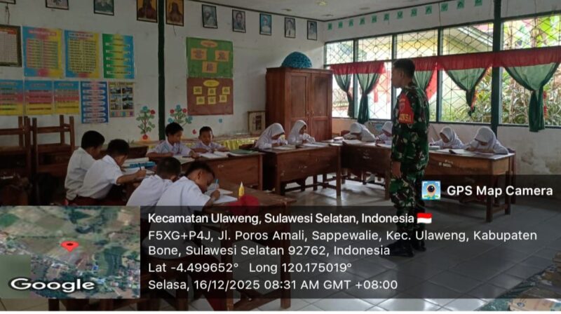 Bone – Babinsa Koramil 1407-05/Ulaweng, melaksanakan kegiatan Perlawanan Wilayah (Wanmil) sebagai upaya membina karakter disiplin di lingkungan sekolah SD Inpres 134, Desa Sappewalie, Kecamatan Ulaweng, Kabupaten Bone. Selasa siang (16/12/25).