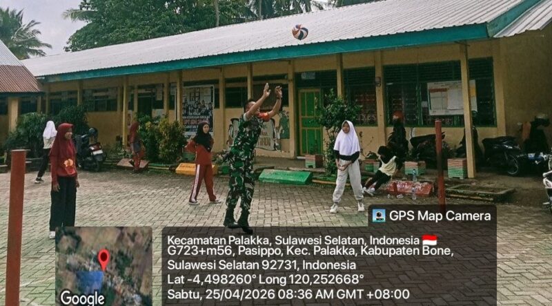 BONE – Babinsa Koramil 1407-21/Palakka melaksanakan kegiatan pembinaan dan motivasi olahraga bola voli kepada murid SD Negeri 28 Usa, Desa Usa, Kec. Palakka, Kab. Bone. Sabtu siang (25/04/26).