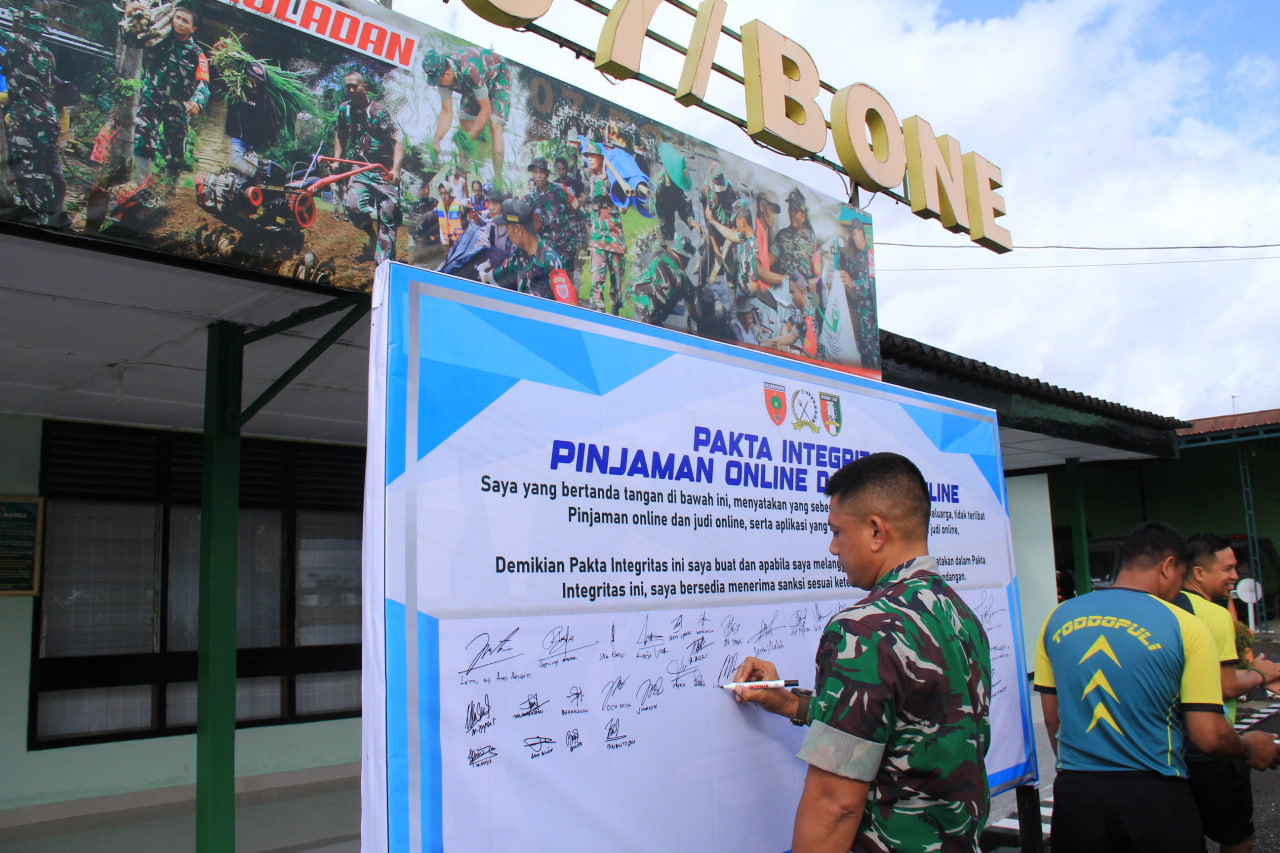 Tanda Tangan Pakta Integritas, Upaya Kodim 1407/Bone Hindarkan Prajuritnya Jeratan Judi Online Dan Pinjaman Online
