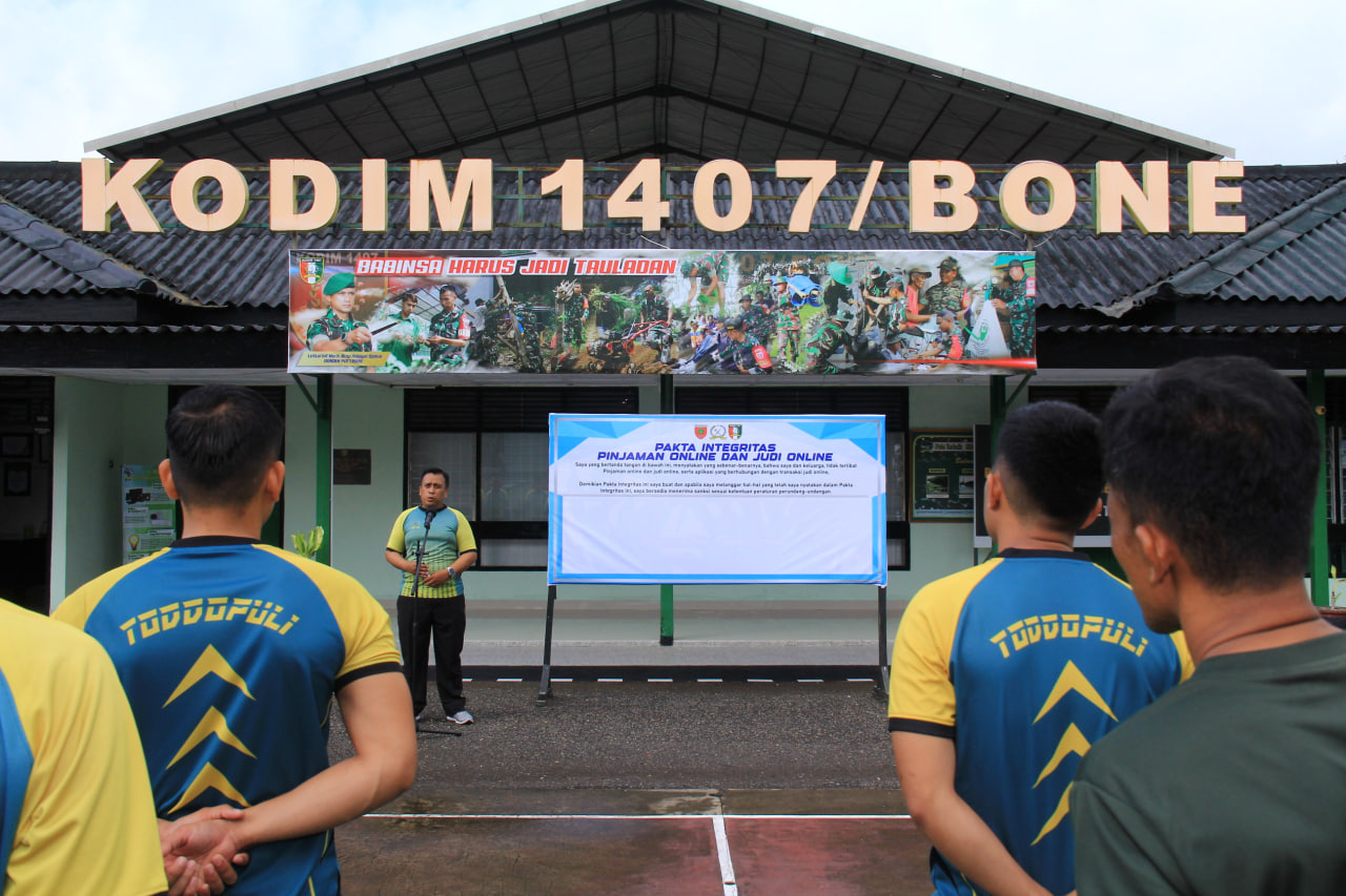 Dalam kesempatan tersebut melalui Pasi Intel Kodim 1407/Bone Lettu Inf. Andi Aryanto menjelaskan kegiatan yang di laksanakan hari ini merupakan menindaklanjuti perintah pimpinan dalam rangka mencegah jajarannya tidak terjerat judi online dan pinjaman online.