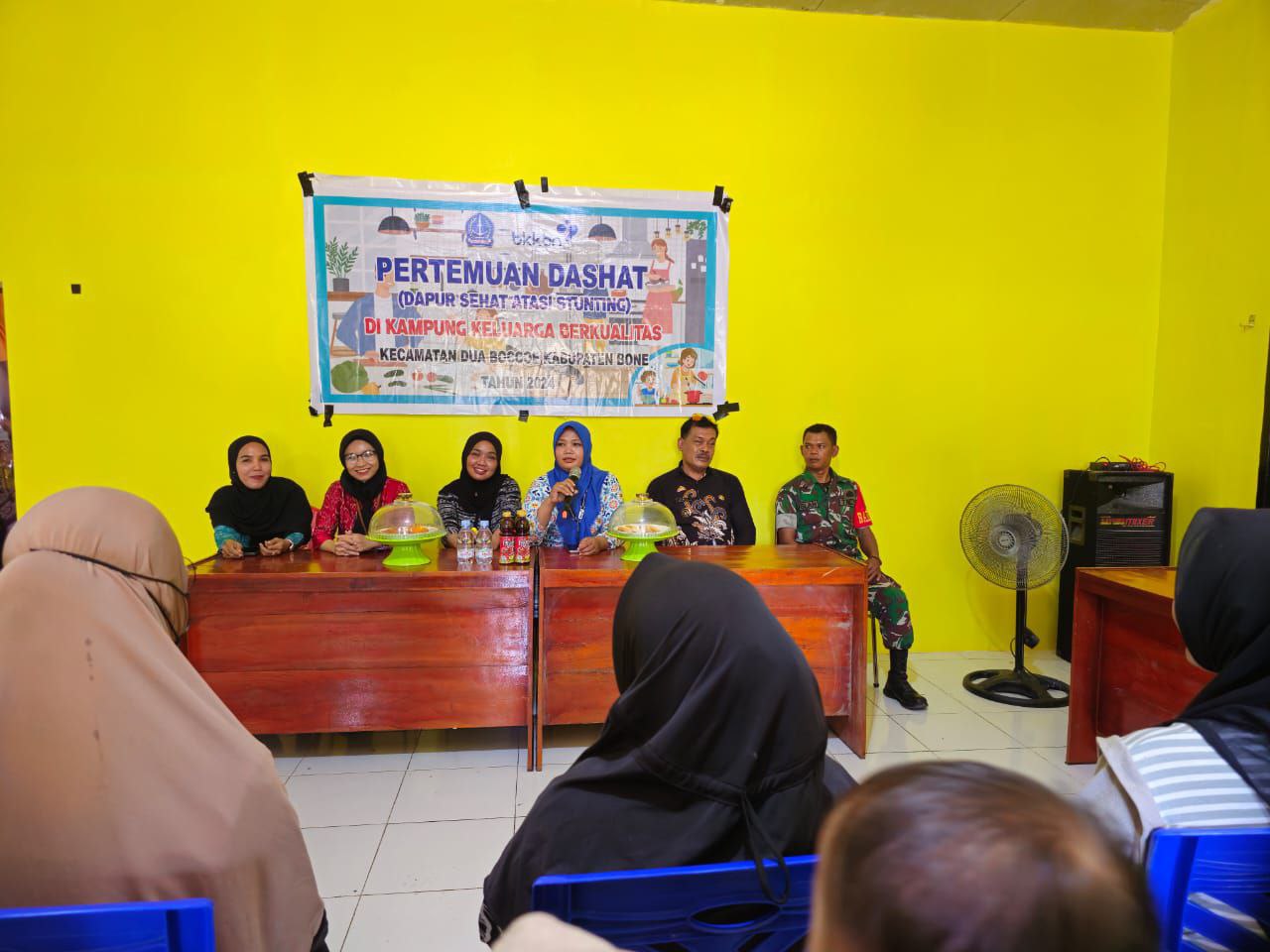 BONE – Babinsa Koramil 1407-02/Dua Boccoe Sertu Ruslan hadiri pertemuan sosialisasi program Dashat (Dapur Sehat Atasi Stunting) di aula kantor Desa Watang Padacenga, Kec. Dua Boccoe, Kab. Bone. Kamis (20/06/24).