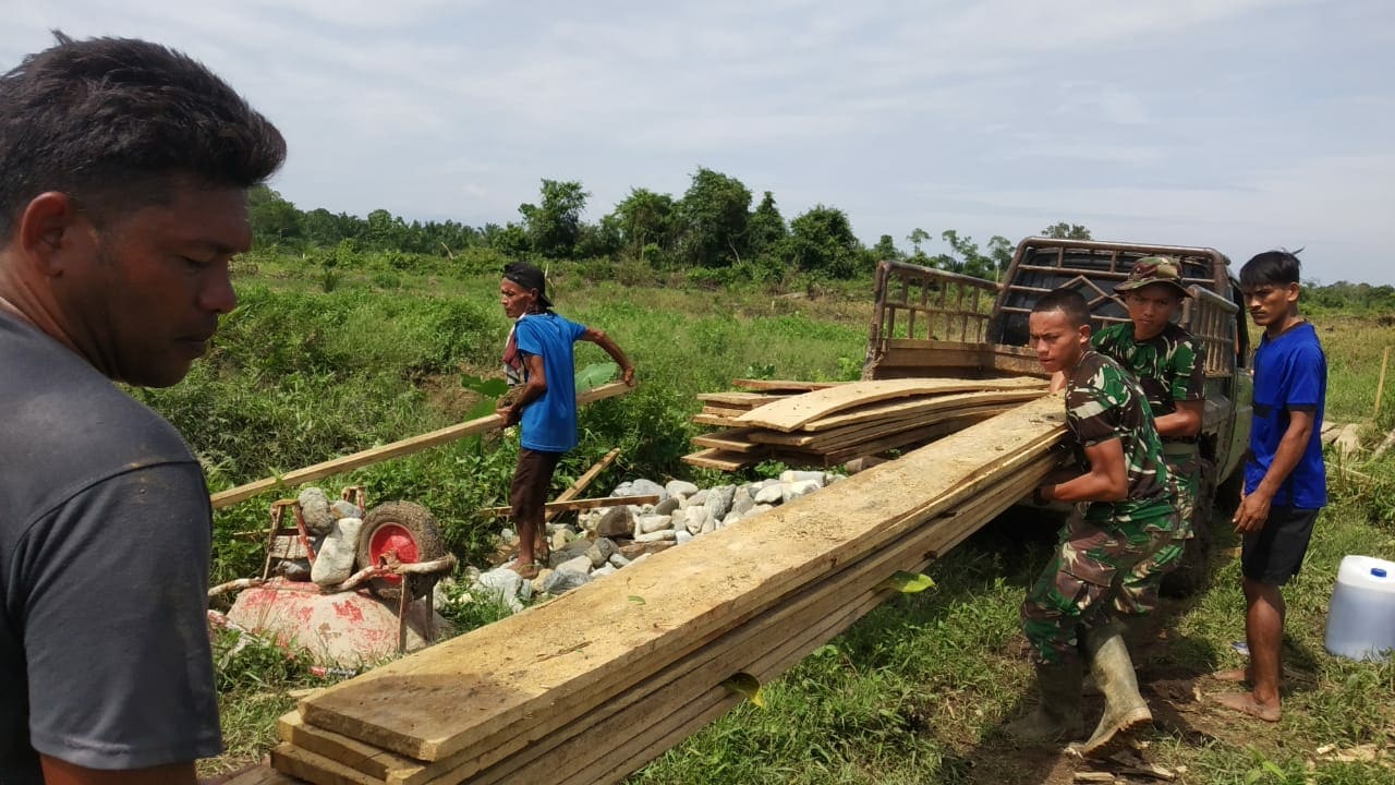 Nagan Raya – Akses jalan menuju lokasi TMMD didesa Cot Kumbang Kecamatan Kuala,Nagan Raya menjadi tantangan sendiri bagi Satgas TMMD Reg ke 113 Kodim 0116/Nara
