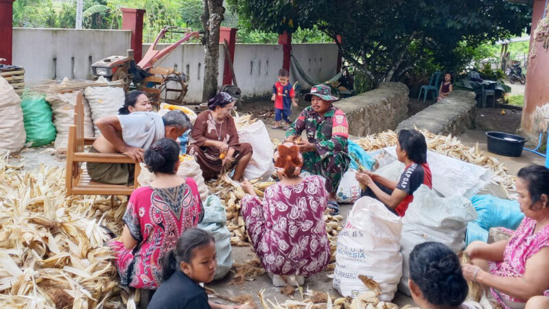 Kegiatan yang dilakukan oleh Babinsa dalam membantu petani melakukan proses mengupas pasca panen jagung tersebut merupakan salah satu bagian dari pendampingan ketahanan pangan di wilayah binaan.
