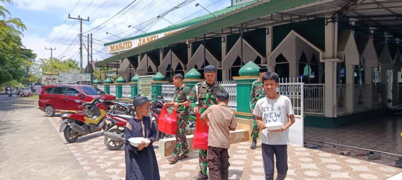 Usai pelaksanaan Salat Jumat, para prajurit Kodim membagikan puluhan nasi kotak kepada para jemaah. Kegiatan sederhana ini disambut hangat oleh masyarakat, menebarkan suasana keakraban, kepedulian, dan rasa syukur di tengah kehidupan sehari-hari.