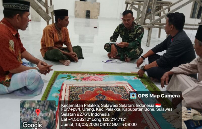 BONE – Babinsa Koramil 1407-21/Palakka Sertu Kahar melaksanakan kegiatan penyerahan zakat fitrah kepada Imam Masjid Akbar Al Ijihad di desa Ureng, Kec. Palakka, Kab. Bone. Jumat Malam (13/03/26).