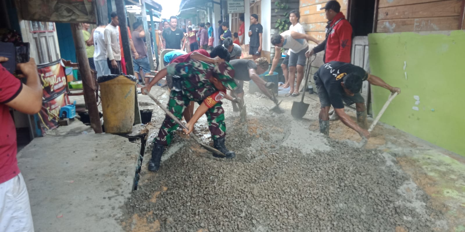Tarakan – Sebagai Pelopor peningkatan kesejahteraan dan pelayanan dilingkungan wilayah binaan,Babinsa Koramil 0907/03 Tarbar Serma Suparman turut membantu Pengecoran jalan di RT.21 Kel.Karang anyar pantai,Minggu(12/06/2022).