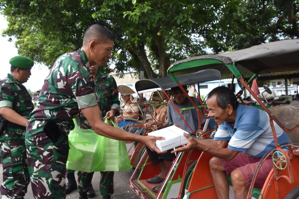 Watampone – Korem 141/Tp menggelar Jumat berkah dengan membagikan nasi kotak kepada tukang becak dan pemulung yang ada di sekitar kota Watampone. Jumat. 14/07/2023.