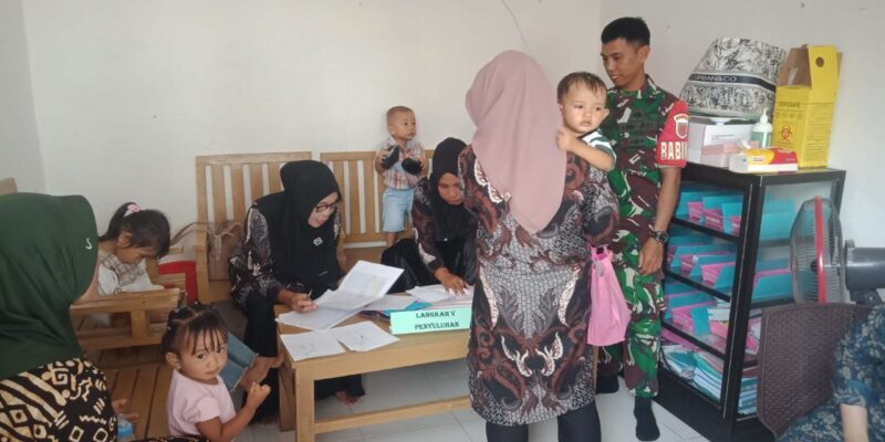 BONE – Dalam rangka mendukung pelayanan kesehatan masyarakat di wilayah binaannya, Babinsa Koramil 1407-16/Tonra Kopda Ahmad melaksanakan pendampingan Pos Pelayanan Terpadu (Posyandu) yang berlangsung di Polindes Dusun Bulie, Desa Muara, Kec. Tonra, Kab. Bone. Jumat (01/08/25).