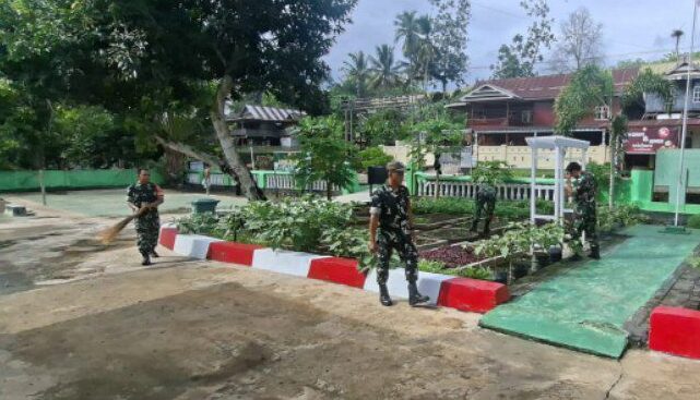 Kegiatan ini mendapat dukungan penuh dari seluruh personel Koramil yang ikut serta dalam membersihkan area Makoramil.