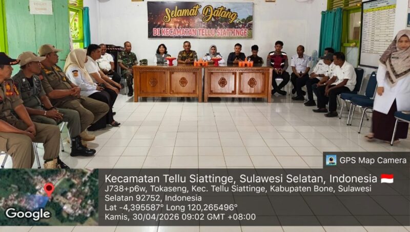 BONE – Babinsa Koramil 1407-04/Tellusiatinge Pelda Ibrahim hadiri sosialisasi Kawasan Bebas Asap Rokok yang diselenggarakan oleh Dinas Kesehatan Kabupaten Bone di Aula Kantor Kec. Tellusiatinge, Kab. Bone. Kamis siang (30/04/26).